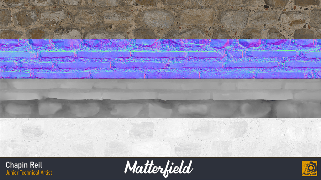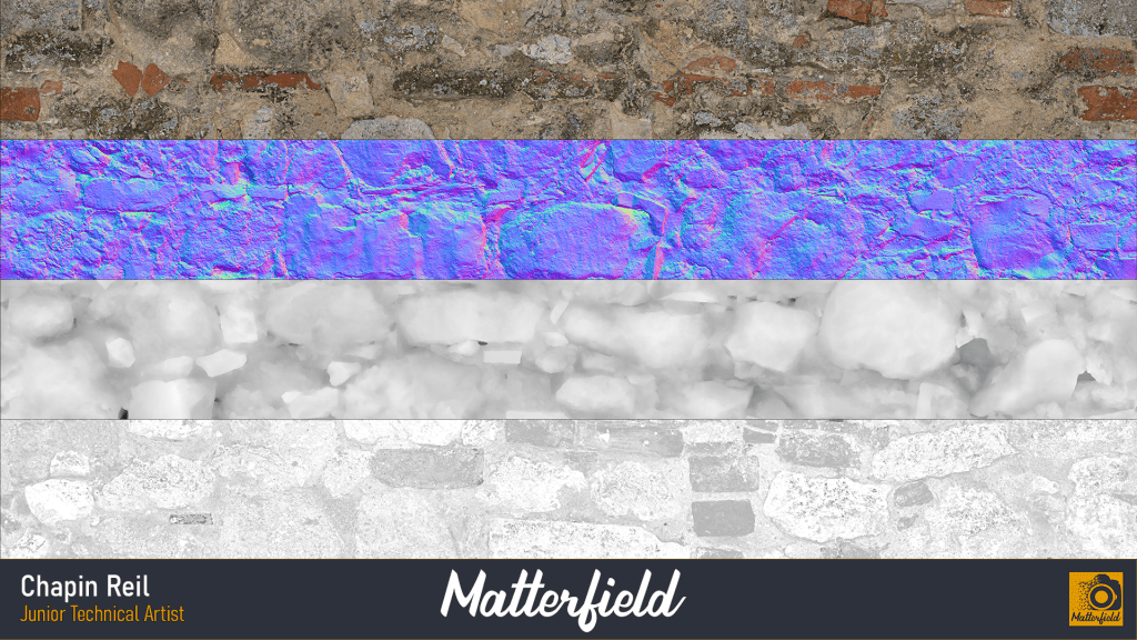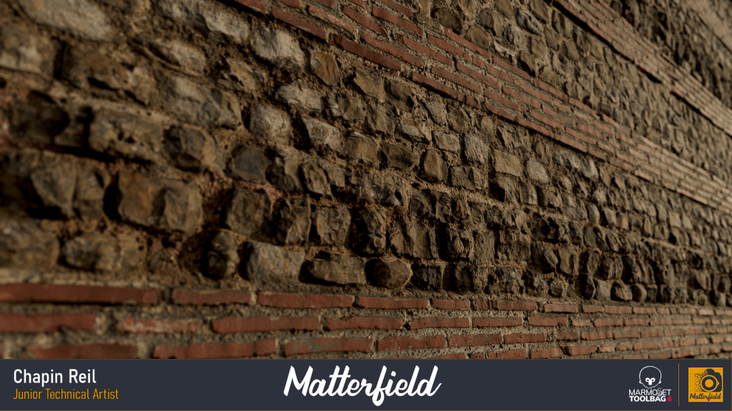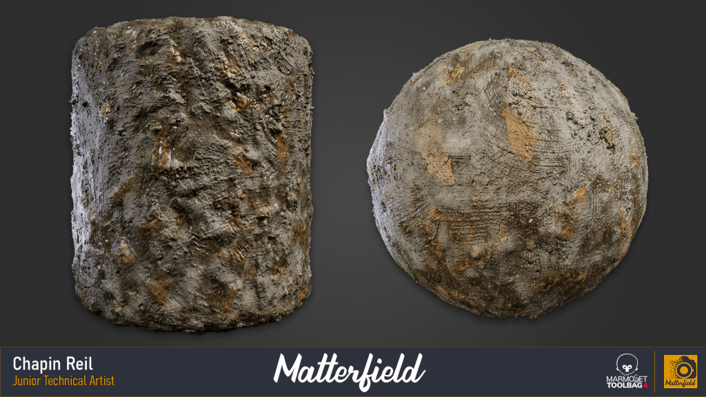 During my time at Matterfield one of my primary responsibilities was working with photogrammetry scan data, captured by Matterfield’s photographers, to create tileable materials. The goal with all the materials was to tile the surfaces while keeping as much of the original scan’s character as possible, and without visible artifacts. Below is a collection of nine different materials I processed at Matterfield.